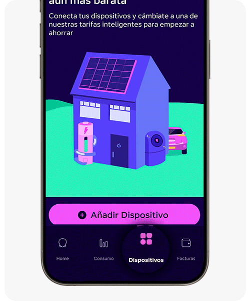 Obre l’app d’Octopus al teu mòbil i dirigeix-te a la secció “Dispositius”. Aquest és el lloc des d’on podràs gestionar tots els equips connectats al teu compte, incloent-hi carregadors i vehicles elèctrics.