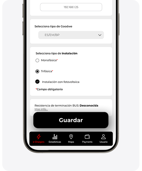 Selecciona ‘GoodWe’ en el apartado ‘Tipo de inversor’. Además, añade la IP de tu dispositivo y la serie a la que pertenece.