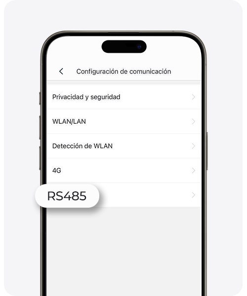 Retrocede a ‘Configuración de comunicación’ y haz clic en ‘RS485’