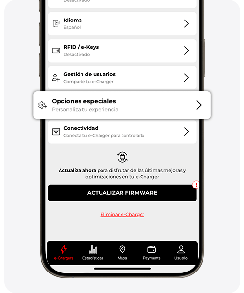 Las modificaciones realizadas en el apartado ‘Configuración’ se utilizarán como valores predeterminados. No obstante, podrás personalizar o modificar la configuración de cada cargador de forma individual.