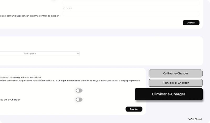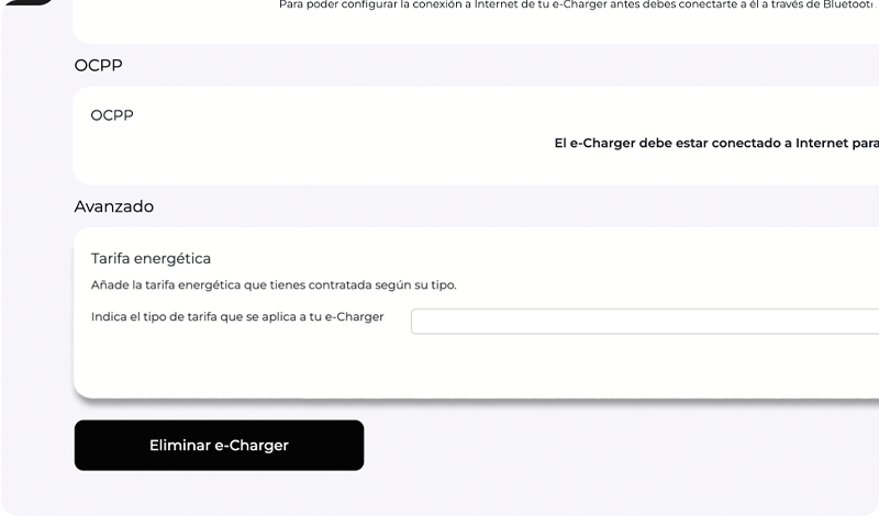 Para poder eliminar un cargador pulsa sobre ‘Eliminar e-Charger’ y confirma que quieres eliminarlo.