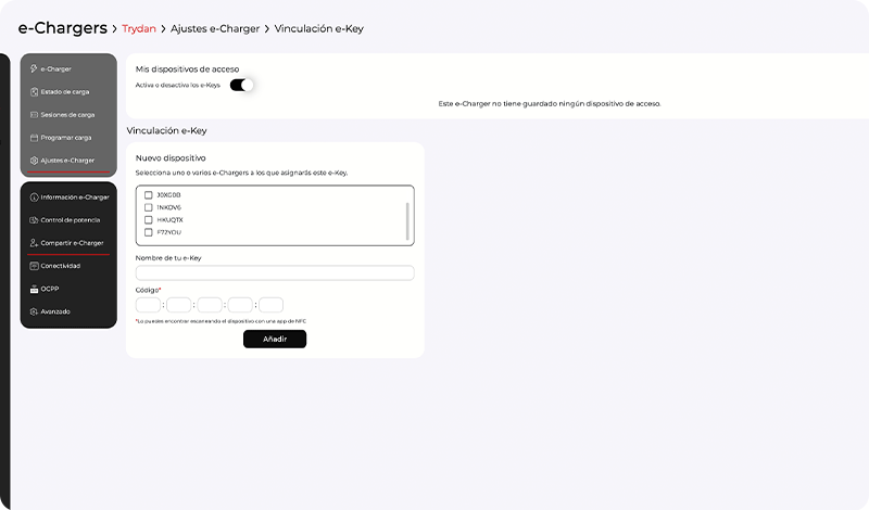 – En Trydan Pro, se muestra como ‘RFID / e-Keys’