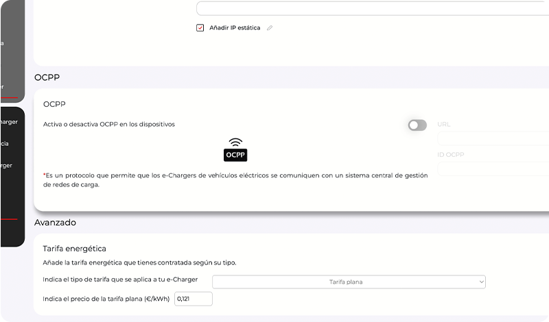 Activa esta opción solo si quieres que tu e-Charger se comunique con un sistema central de gestión de redes de carga.