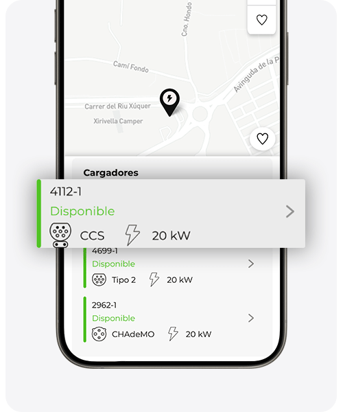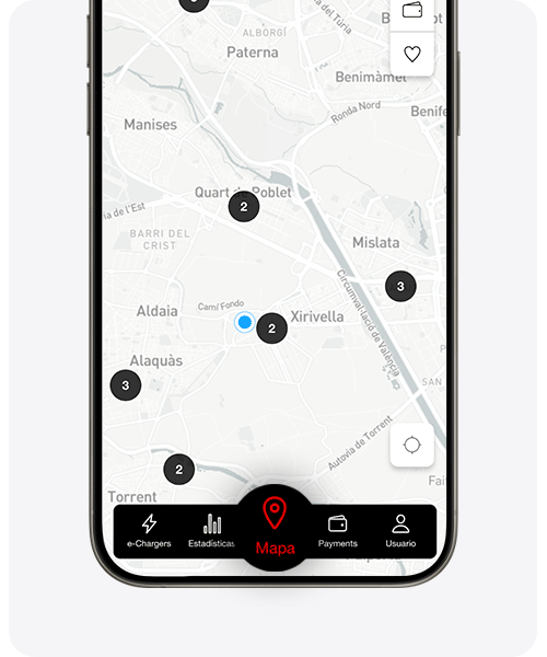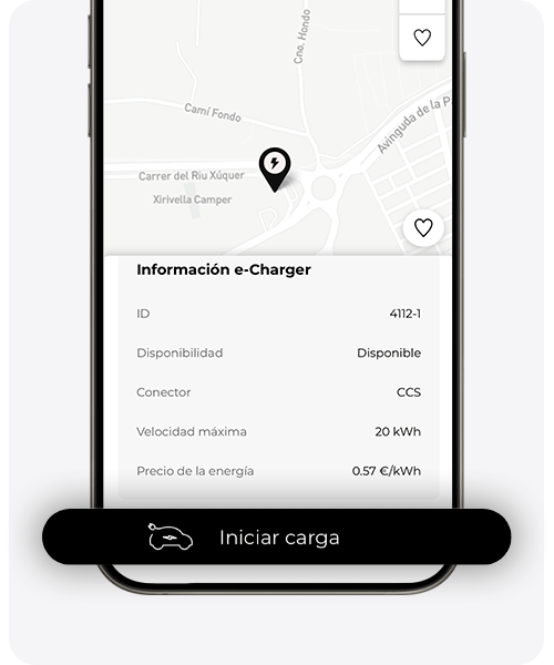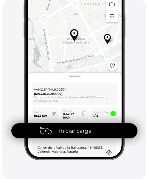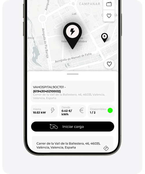 En el apartado ‘Mapa’ puedes localizar cargadores públicos de múltiples operadores integrados, iniciar la carga fácilmente y pagar de forma segura a través de V2C Payments.