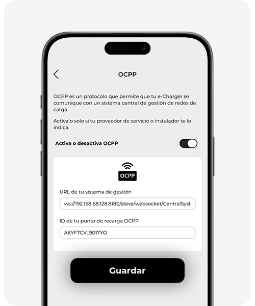 Activa esta opción solo si quieres que tu e-Charger se comunique con un sistema central de gestión de redes de carga.