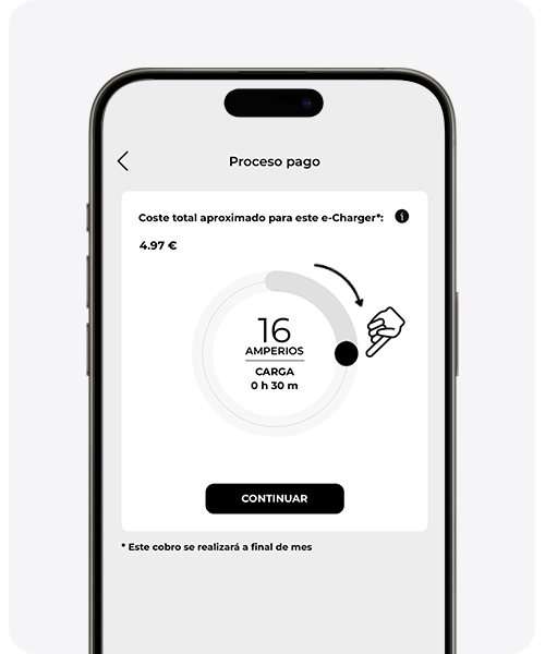 Puedes seleccionar la potencia en la parte superior de la pantalla principal del cargador deslizando el selector a través de la barra horizontal.
