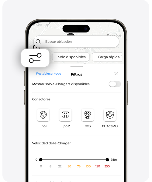 En el apartado ‘Mapa’ puedes filtrar los cargadores públicos según distintos criterios, como disponibilidad, tipo de conector, potencia, número de cargadores en la estación u operador.