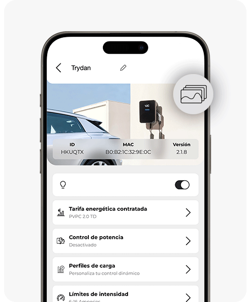 El control dinámico de potencia detecta en tiempo real el consumo eléctrico de tu vivienda o empresa y ajusta la intensidad de carga de forma automática para aprovechar al máximo la potencia disponible sin superar el límite contratado.