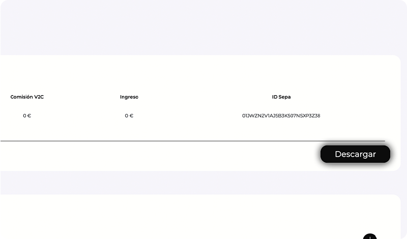 En este apartado hay dos secciones. En la primera puedes ver la cantidad que vas a recibir ese mes, según las cargas que se van realizando. Y, en la segunda, puedes controlar las operaciones realizadas filtrando por las fechas que deseas consultar. Además, puedes descargar en PDF facturas de cada una de las transacciones.