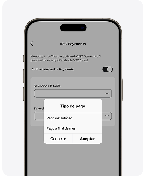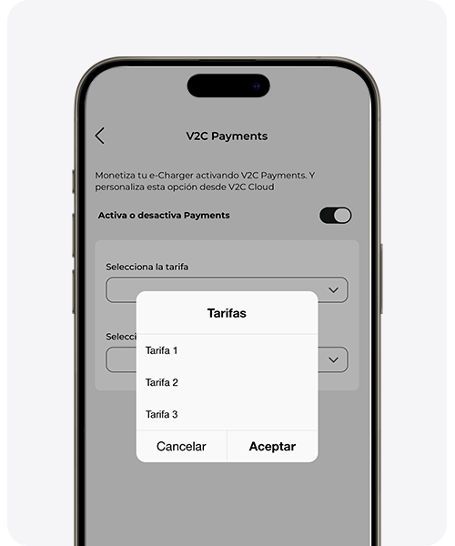 Una vez creada al menos una tarifa, es necesario activar el sistema de pagos desde la app móvil o el portal web. Debes tener en cuenta que V2C emite una factura a final de mes y cobra una única comisión del 5%.
