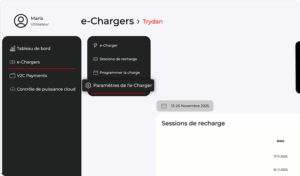 Si vous accédez depuis le portail web www.v2c.cloud , sélectionnez la section OCPP dans le menu à gauche de l’écran. Lorsque vous êtes dans la section, vous verrez seulement es e-Chargers connectés à Internet via WiFi, car OCPP fonctionne uniquement sur les chargeurs ayant cette connexion.