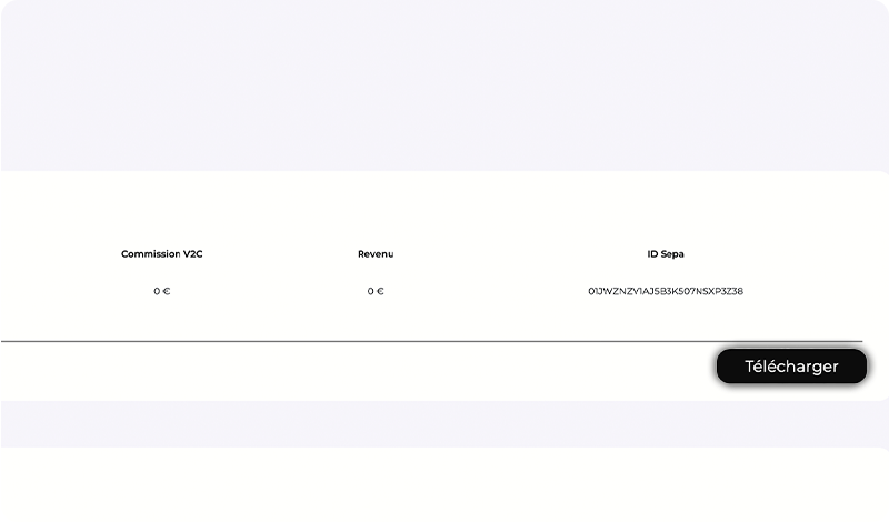 Dans cette section, il y a deux parties. Dans la première, vous pouvez voir le montant que vous allez recevoir ce mois-ci, en fonction des charges effectuées. Dans la seconde, vous pouvez contrôler les opérations réalisées en filtrant par les dates que vous souhaitez consulter. De plus, vous pouvez télécharger les factures de chaque transaction au format PDF.