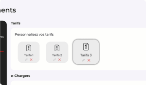 Vous pouvez effectuer cette étape avant ou après l’ajout du chargeur. En effet, vous pouvez modifier les tarifs autant de fois que nécessaire en cliquant sur l’icône en forme de crayon du tarif que vous souhaitez modifier.