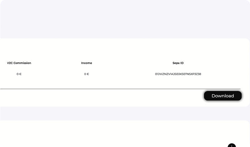 In questa sezione ci sono due parti. Nella prima, puoi vedere l’importo che riceverai quel mese in base alle ricariche effettuate. Nella seconda, puoi controllare le operazioni svolte filtrando per le date che desideri consultare. Inoltre, puoi scaricare in PDF le fatture di ciascuna transazione.