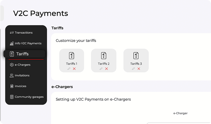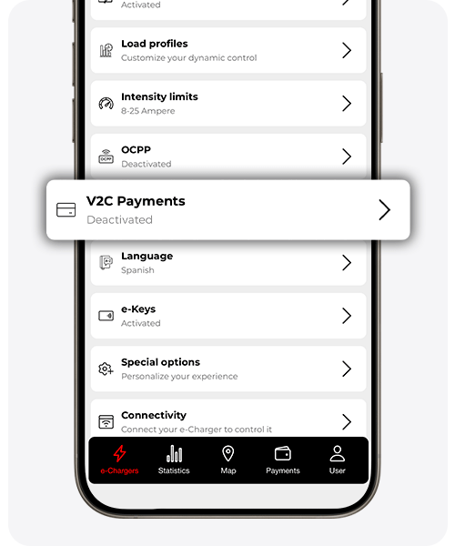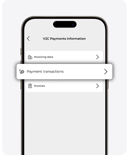 Una volta creata almeno una tariffa, è necessario attivare il sistema di pagamenti dall’app mobile o dal portale web. Tieni presente che V2C emette una fattura alla fine del mese e applica un’unica commissione del 5%.