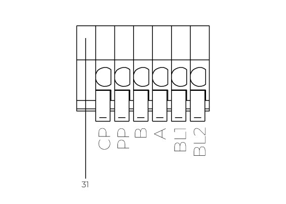 – B- e A para comunicação RTU através de ligação RS485 entre o carregador e o contador MID