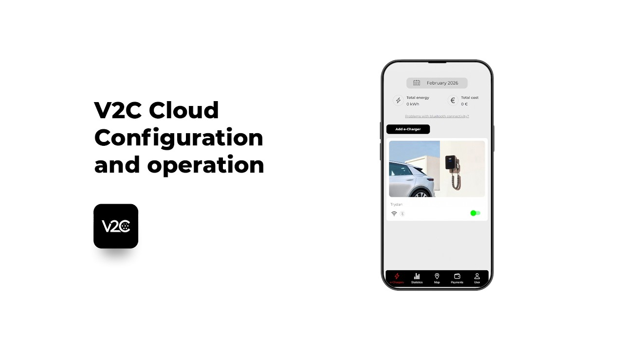 Pode adicionar um novo carregador na sua conta de utilizador a partir da aplicação móvel V2C Cloud ou da plataforma web www.v2c.cloud.
