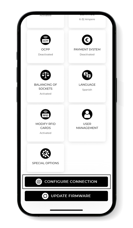 If your e-Charger has a stable Internet connection, you can perform the update directly from the V2C Cloud application through a simple three-step process: